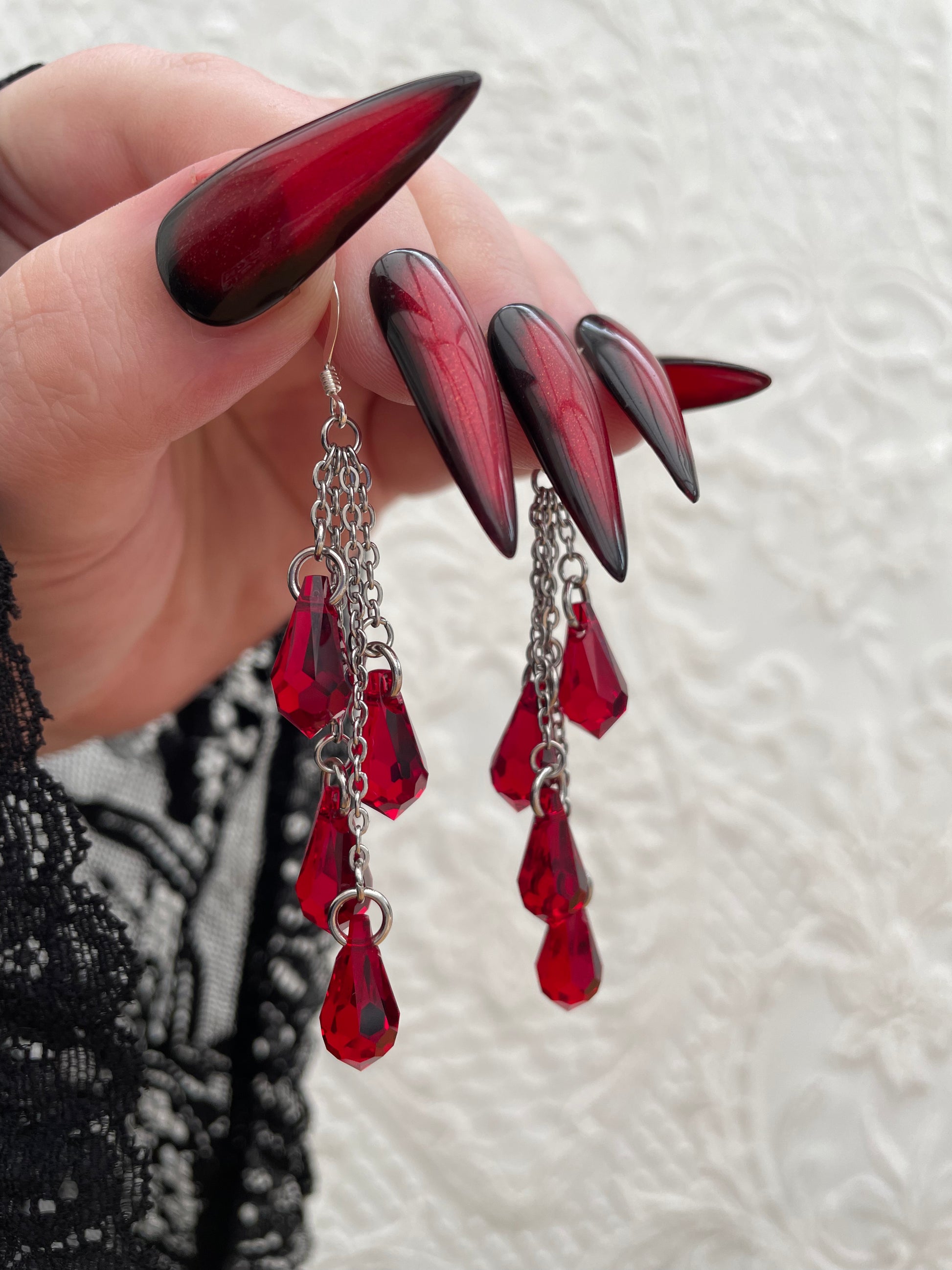 'Bloodlust' Earrings - Red Droplet Earrings - Silver