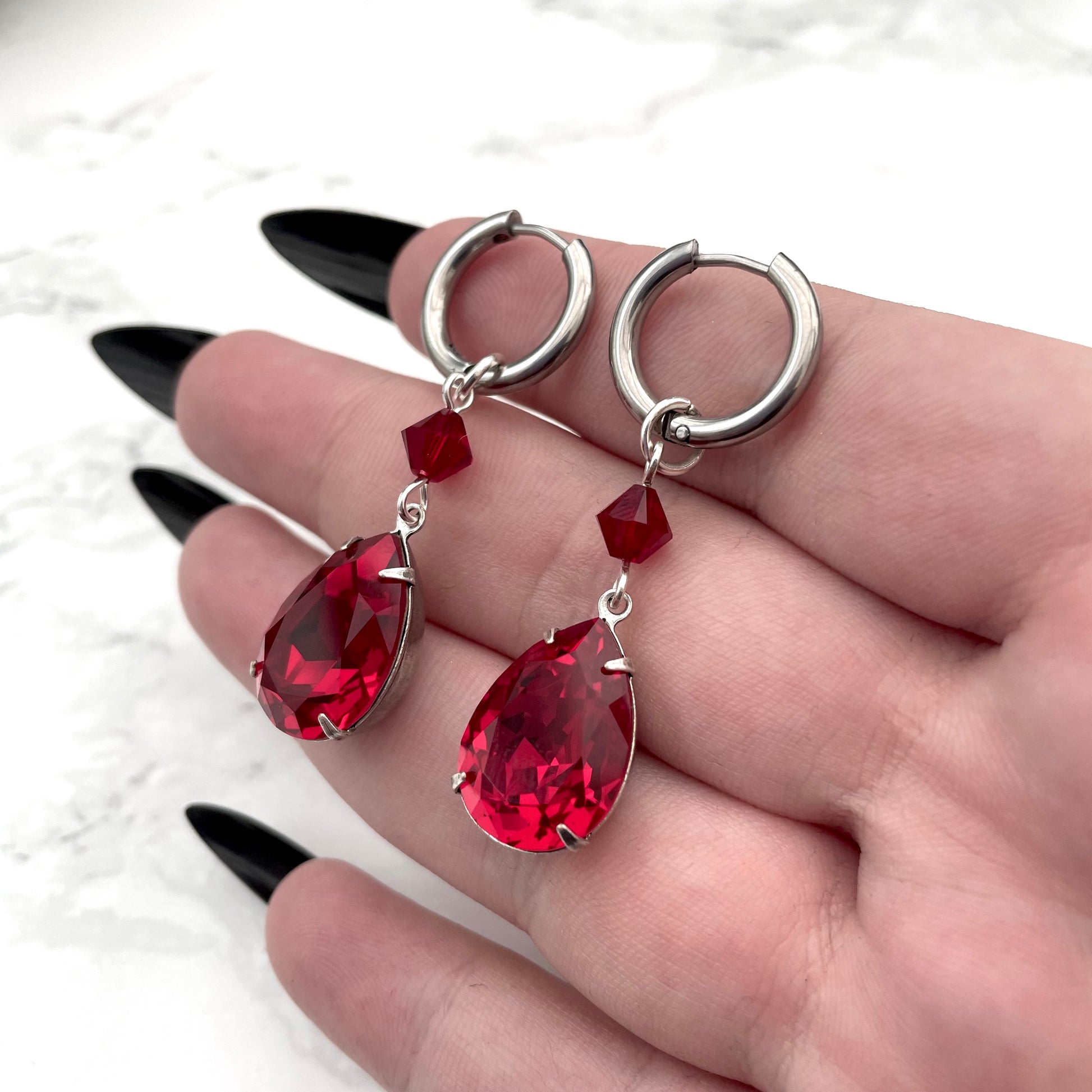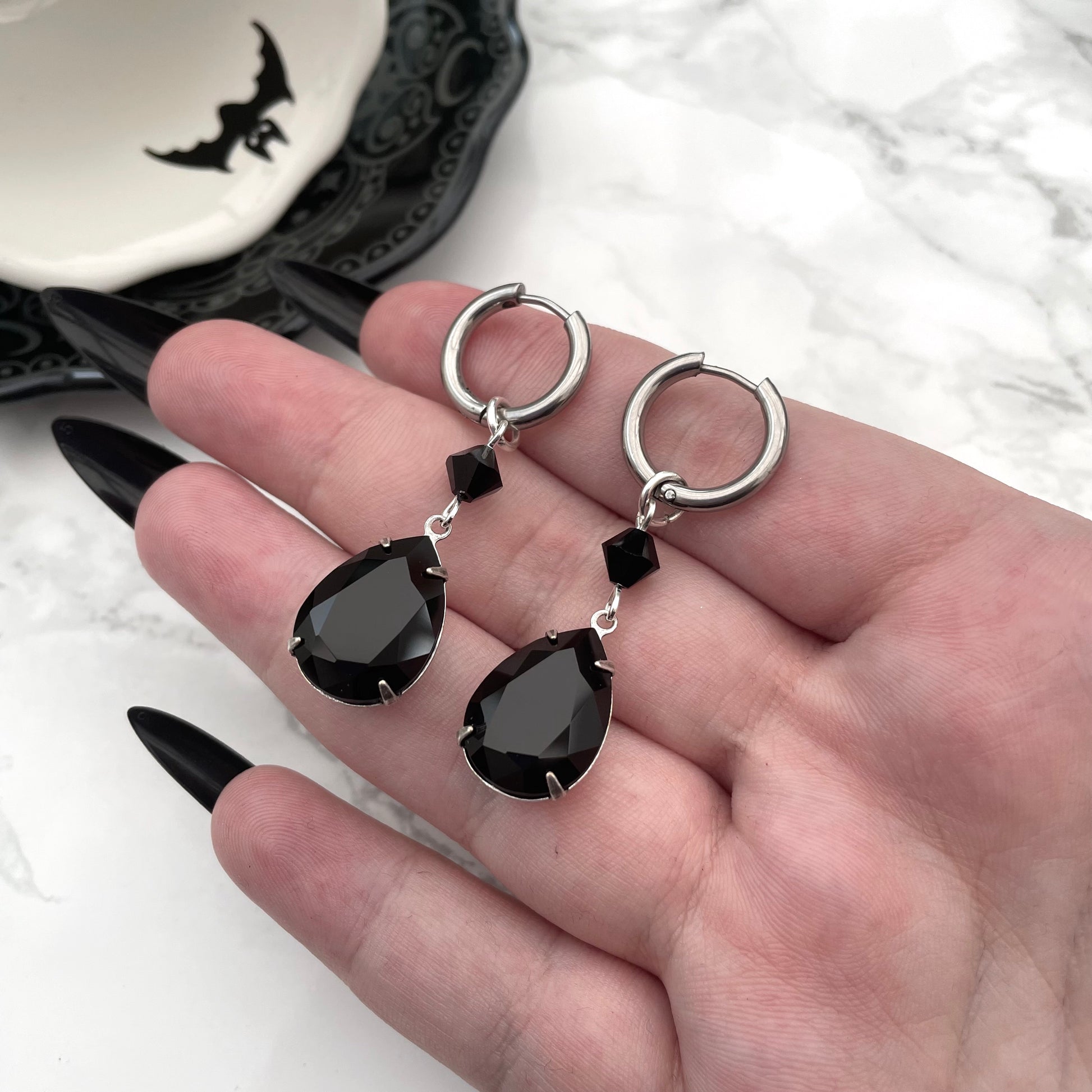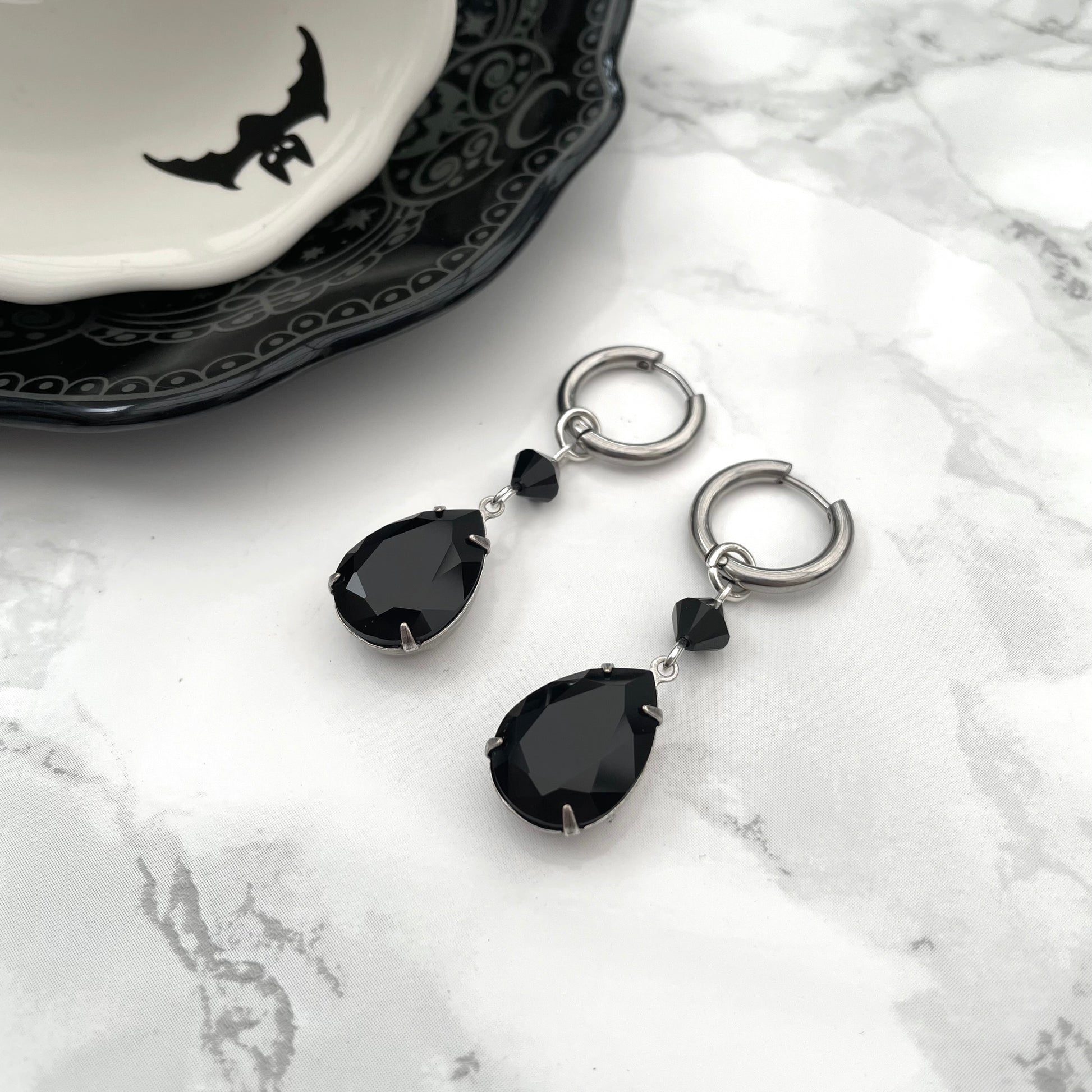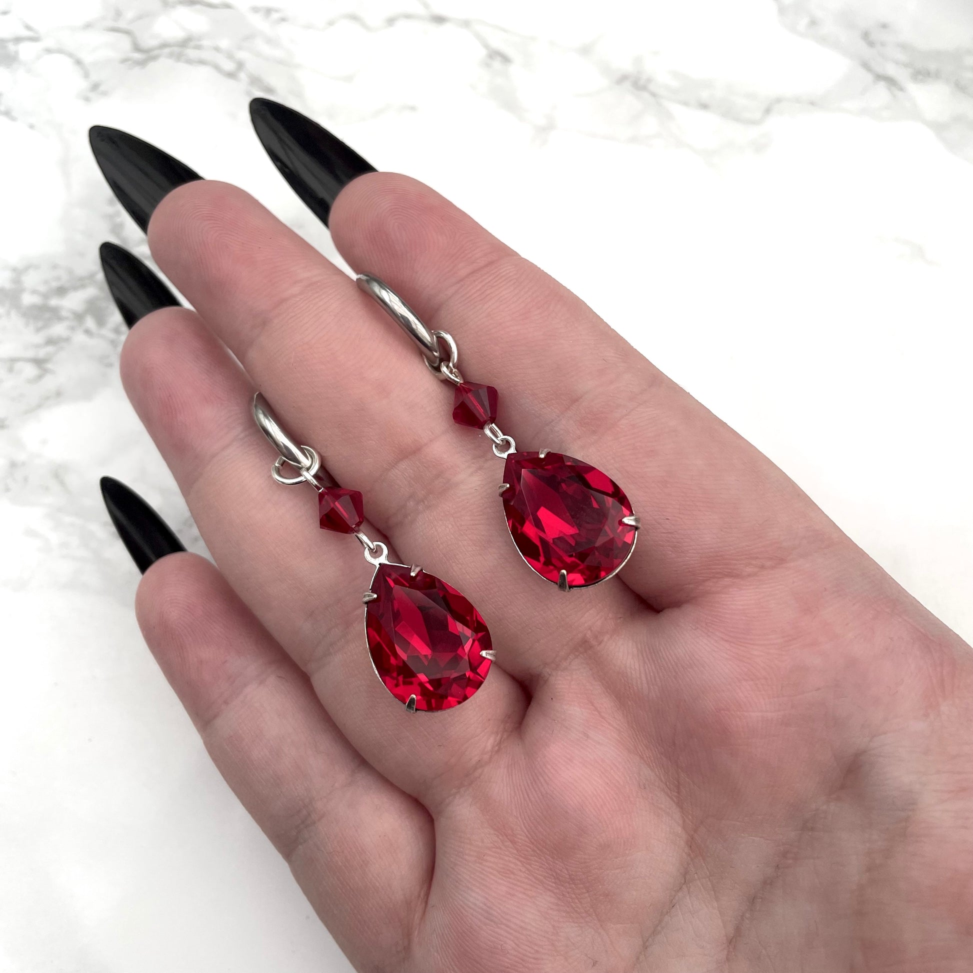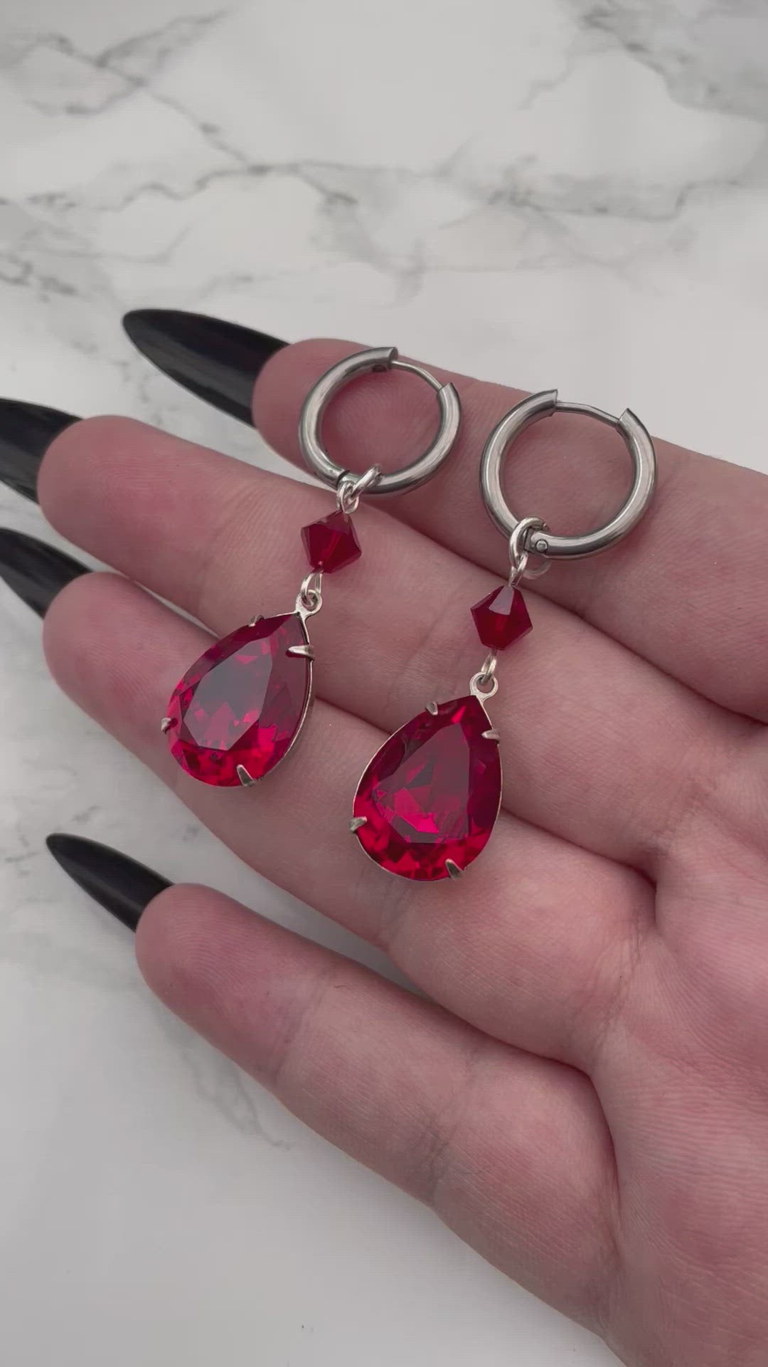These elegant drop earrings feature beautifully cut, high quality glass teardrops which are nestled in a silver plated brass setting and hang gracefully from crystal beads.