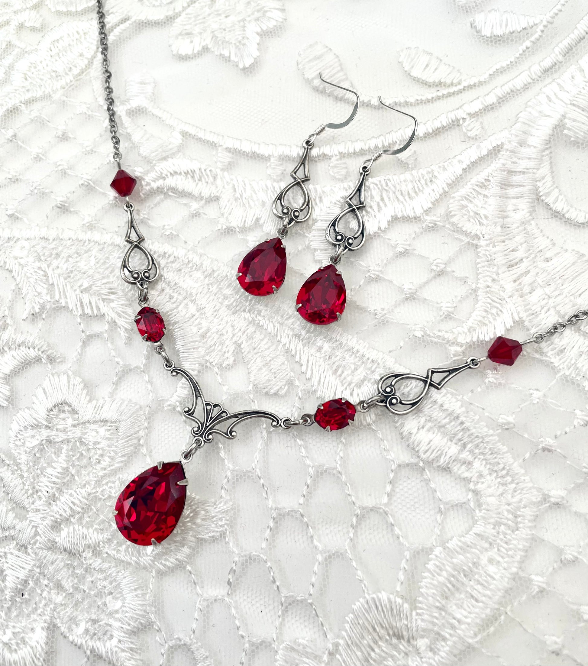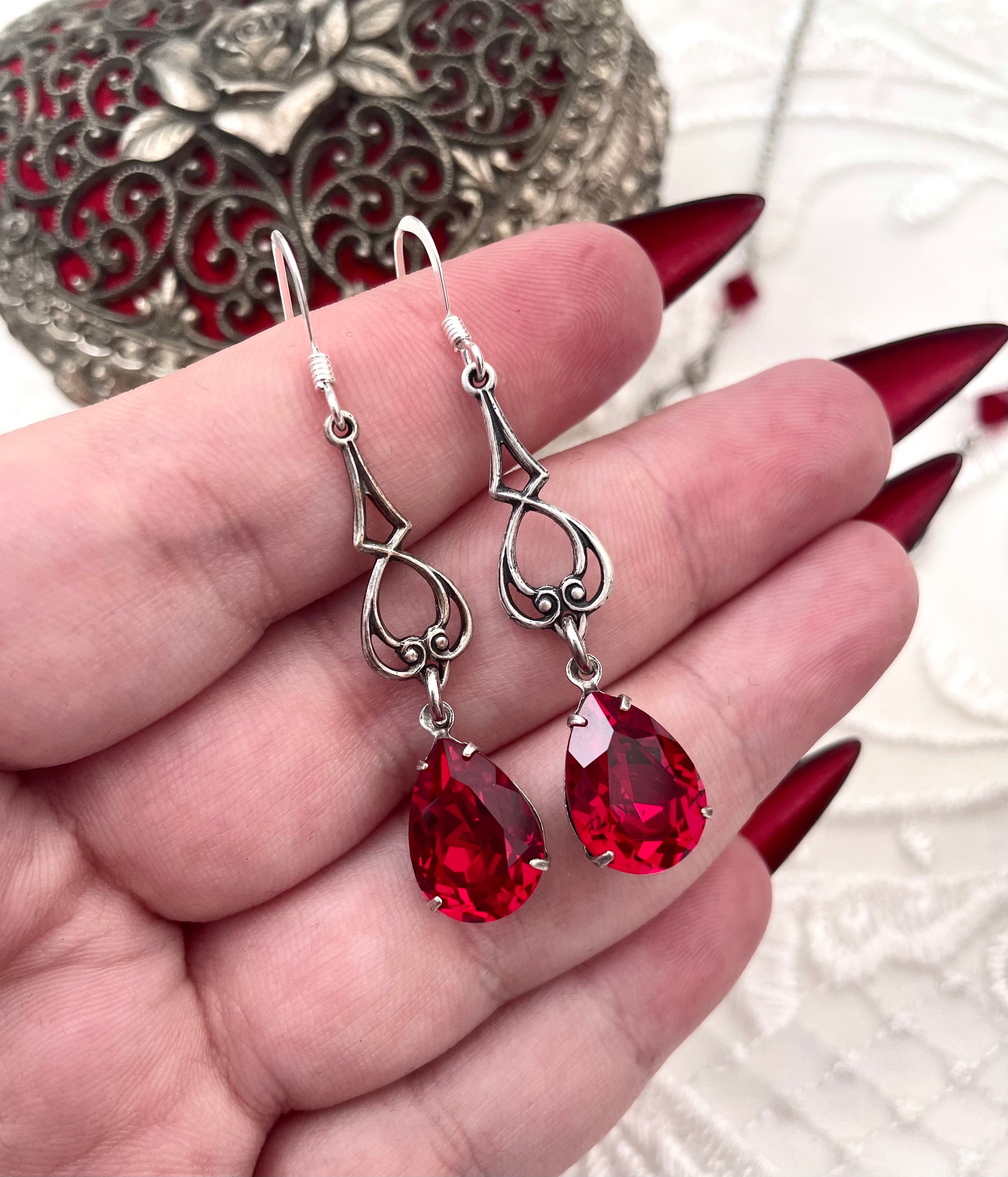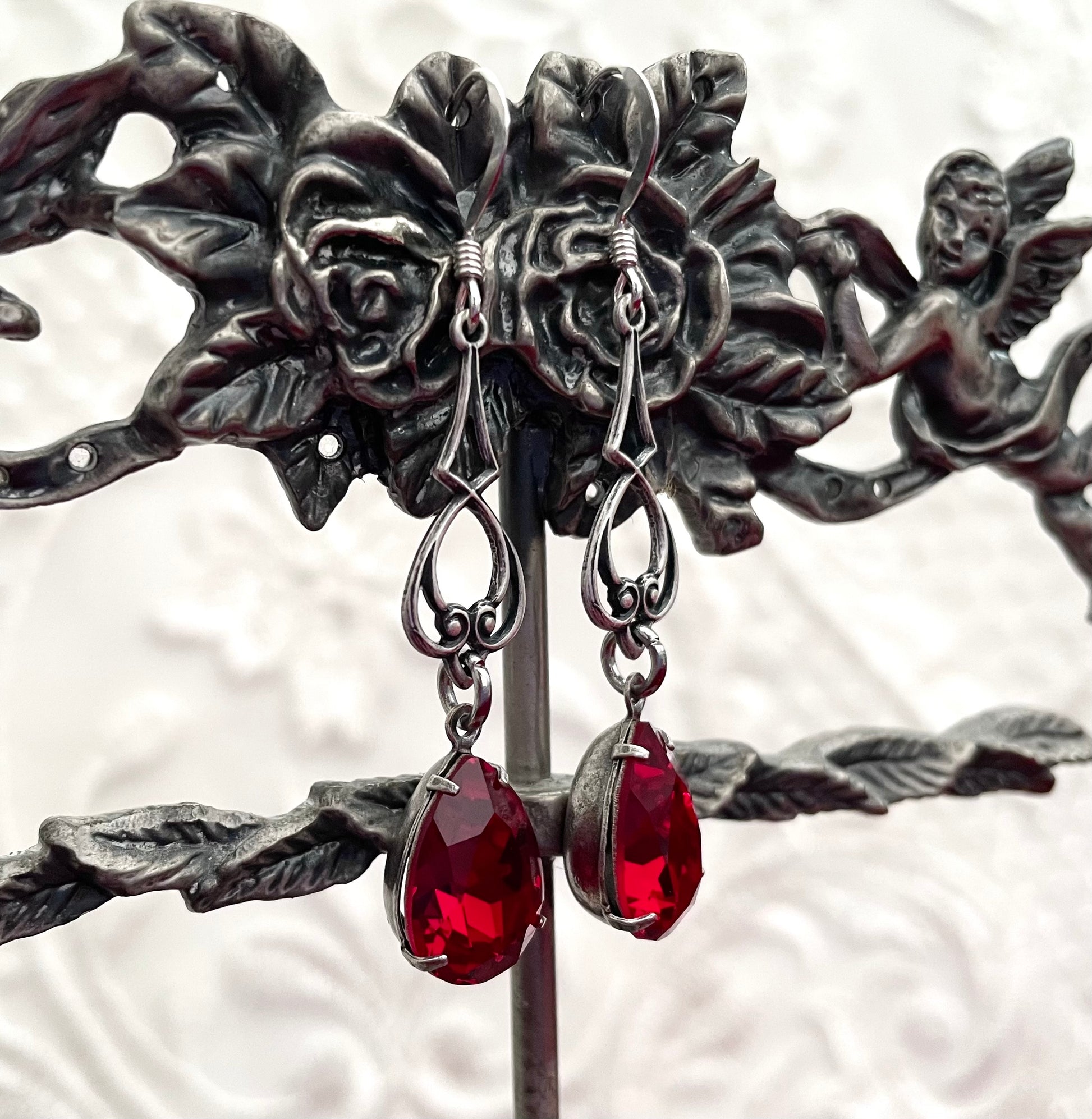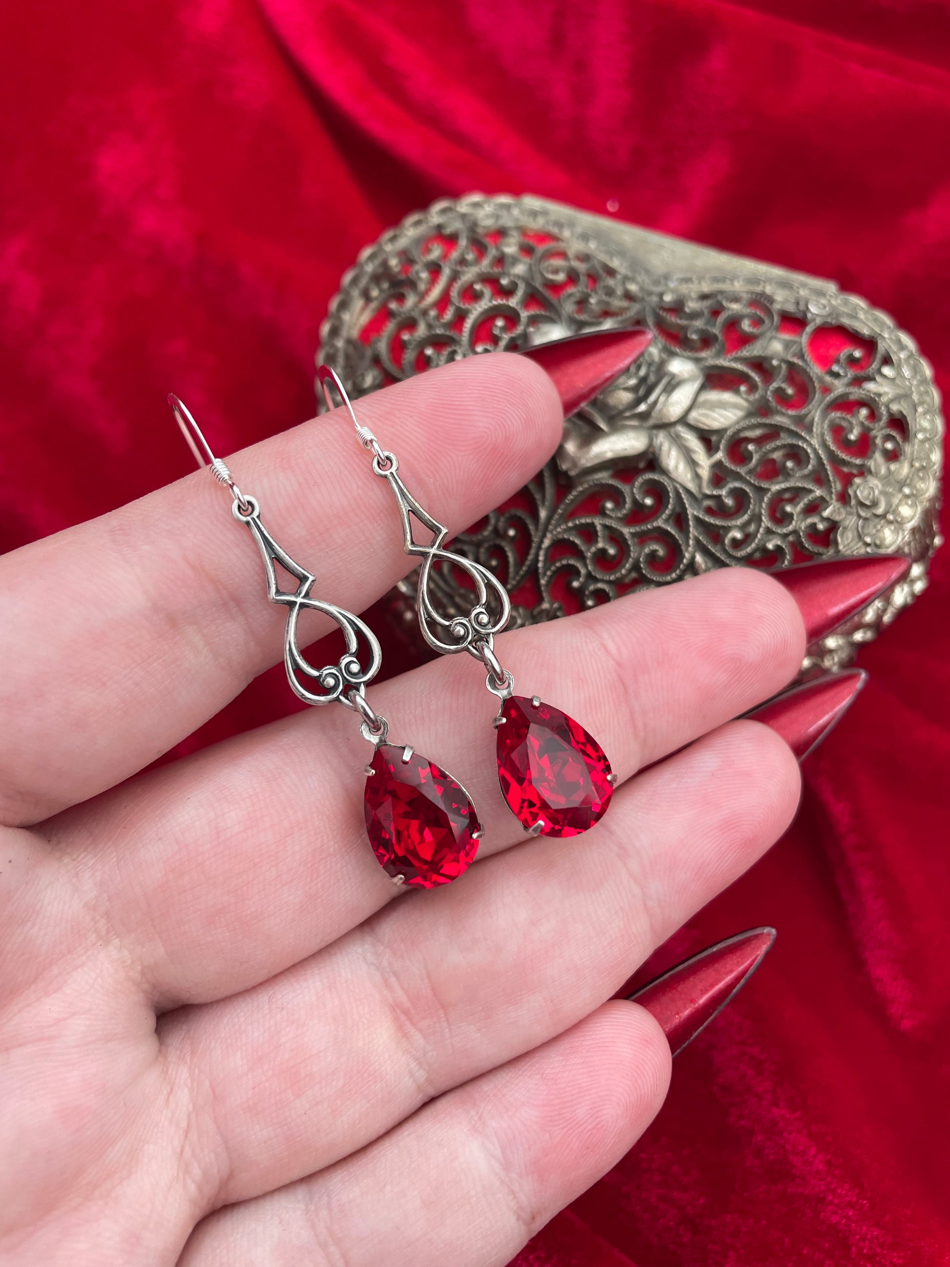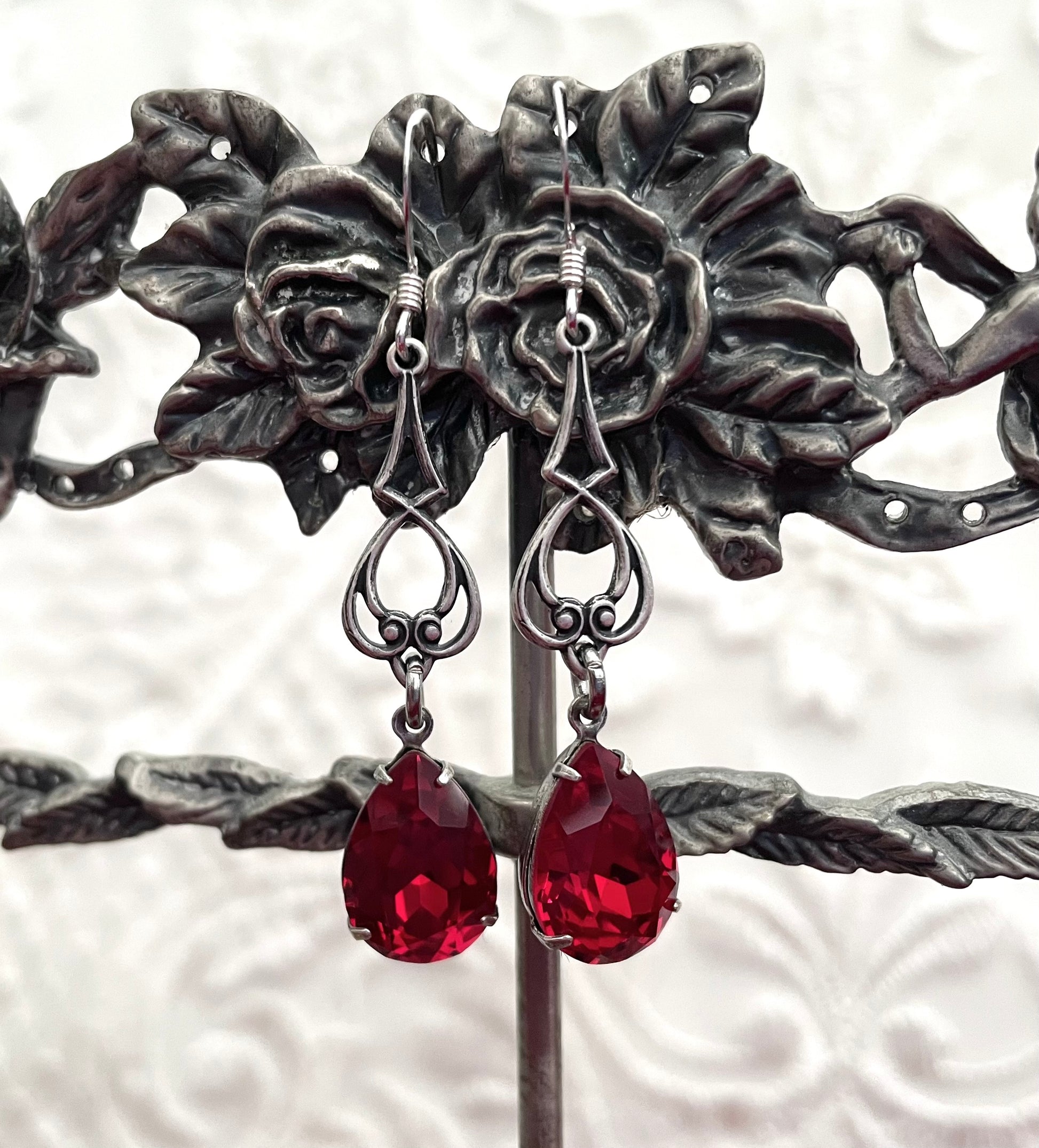Materials include; oxidised sterling silver plated brass, sterling silver or steel (depending on the earrings selected) and high quality, high precision cut glass originating from Europe.