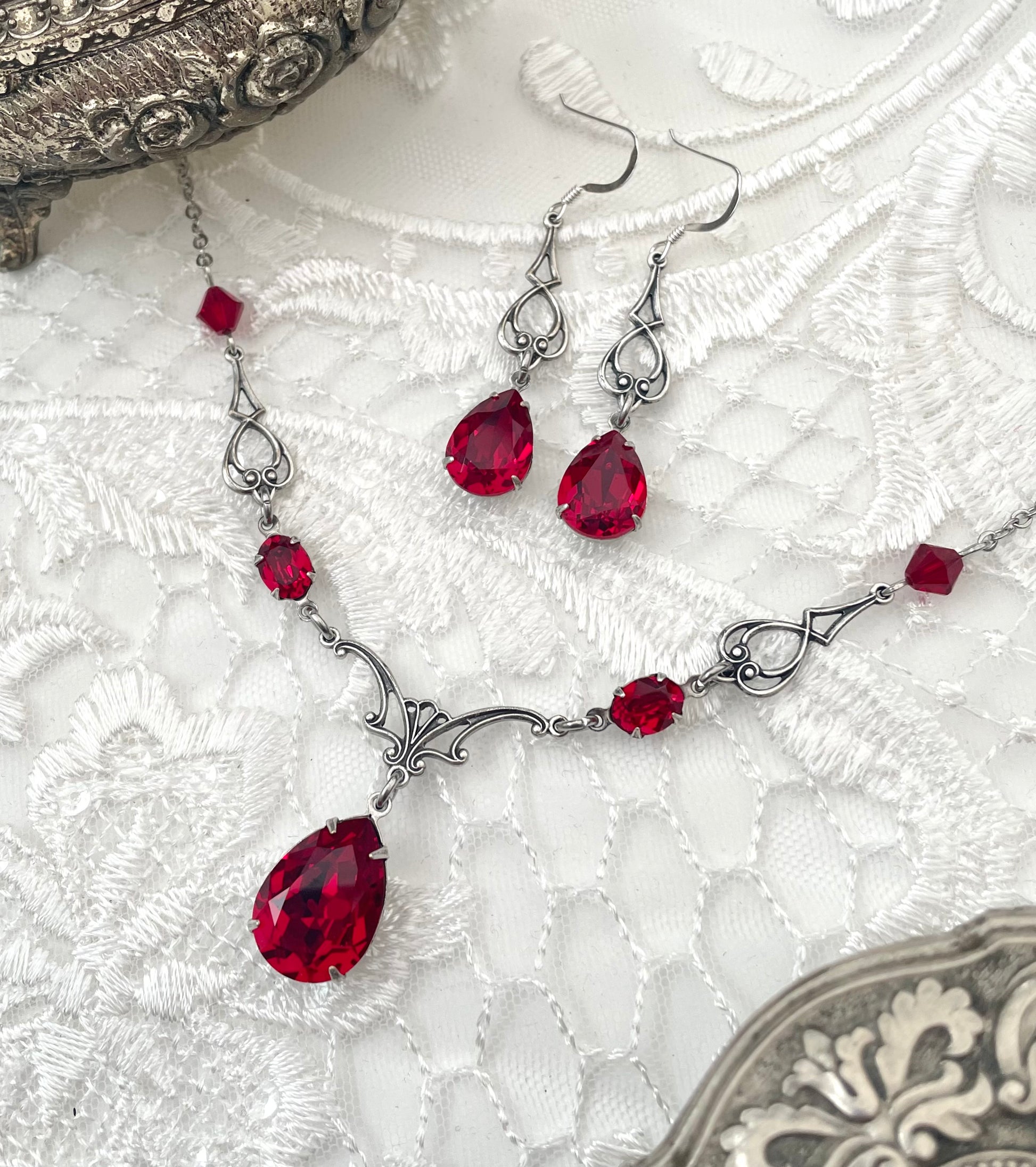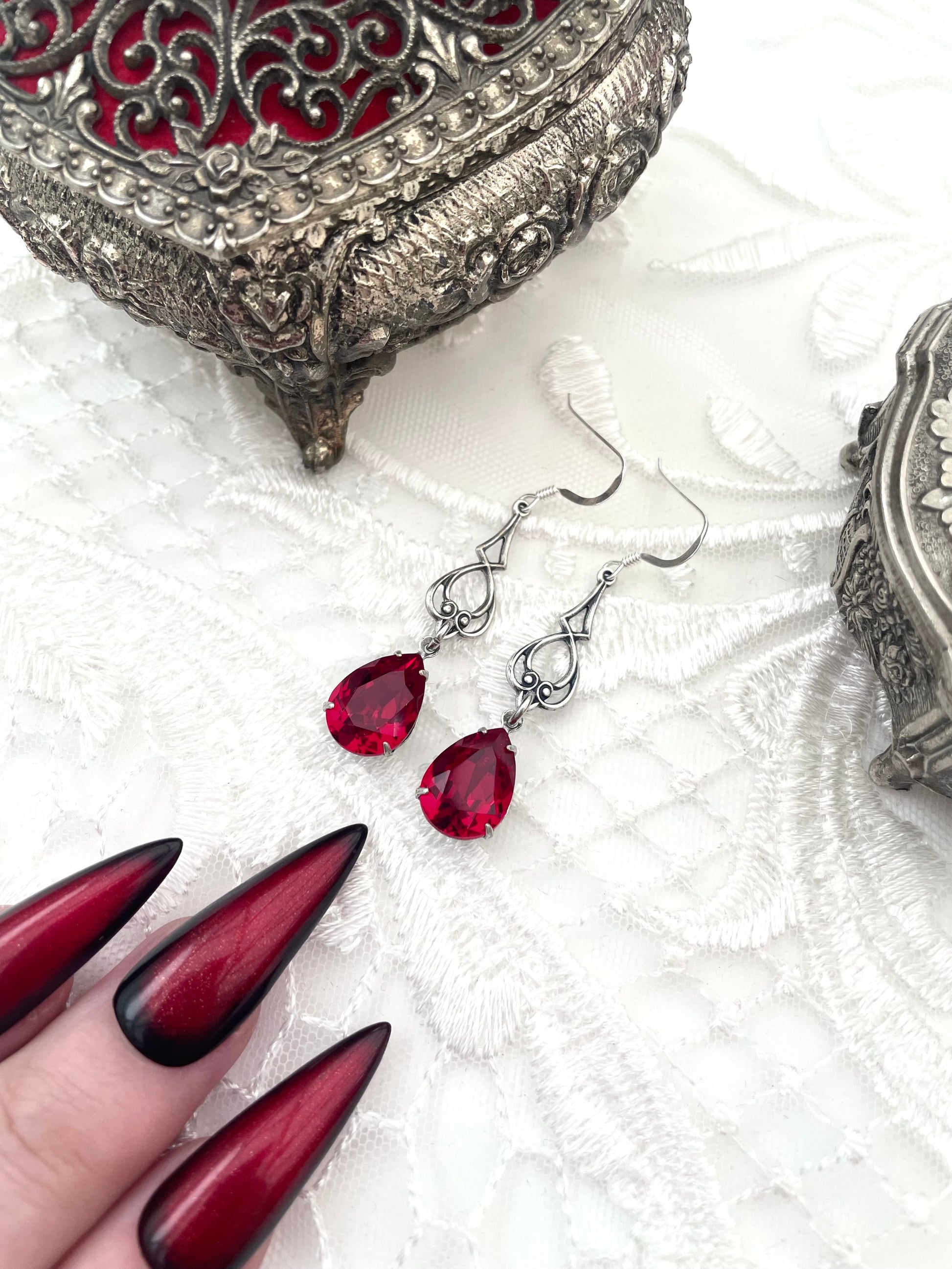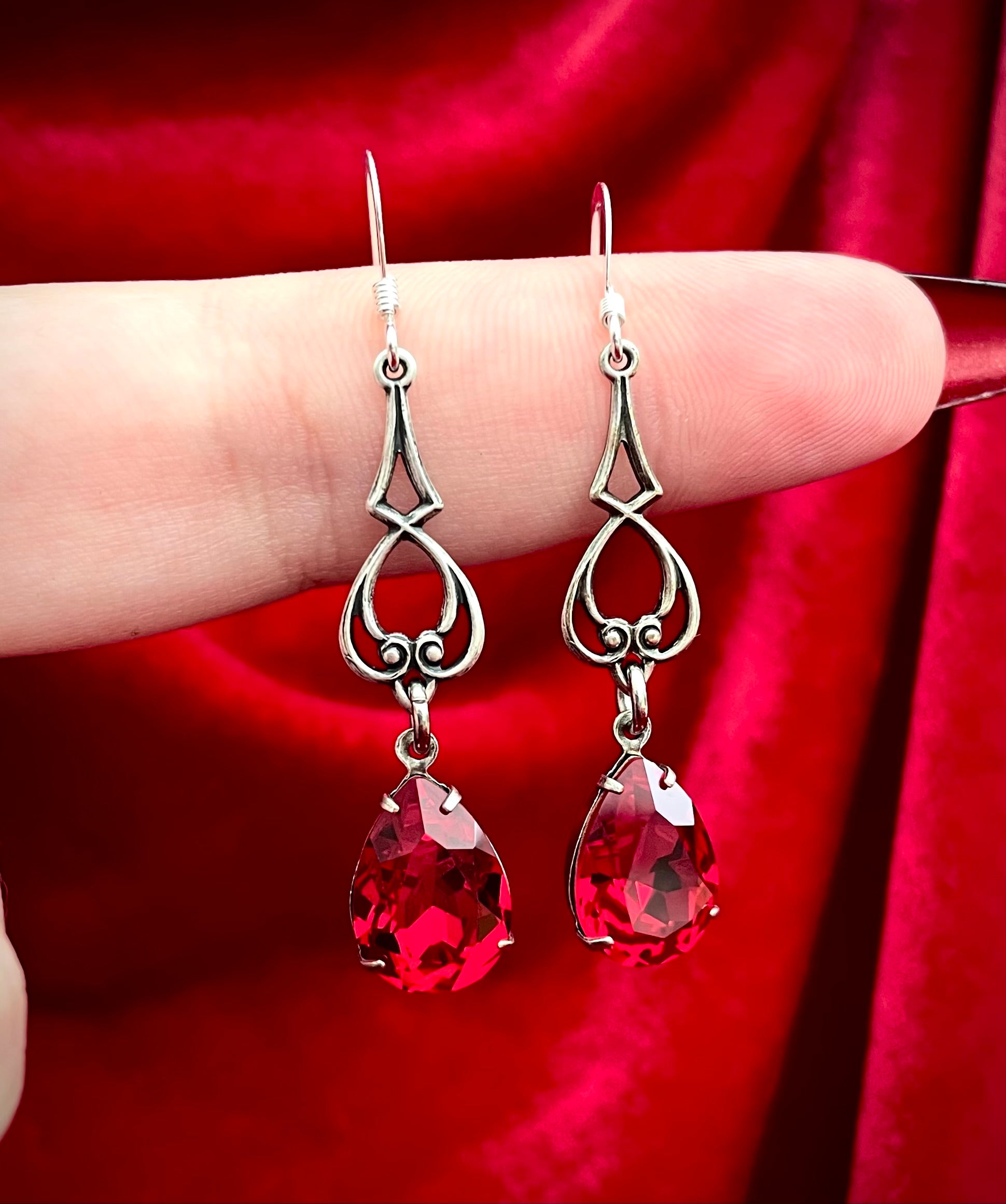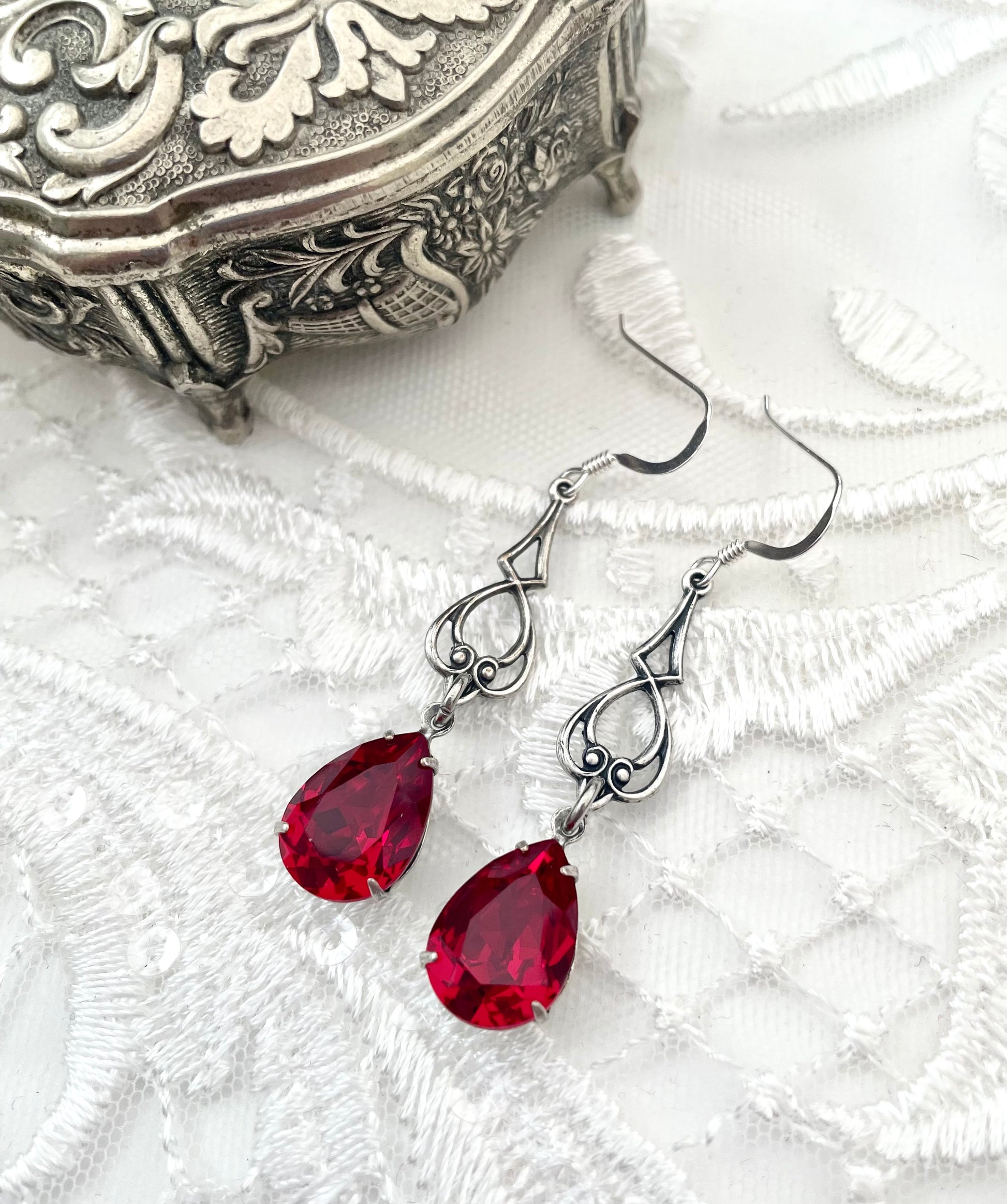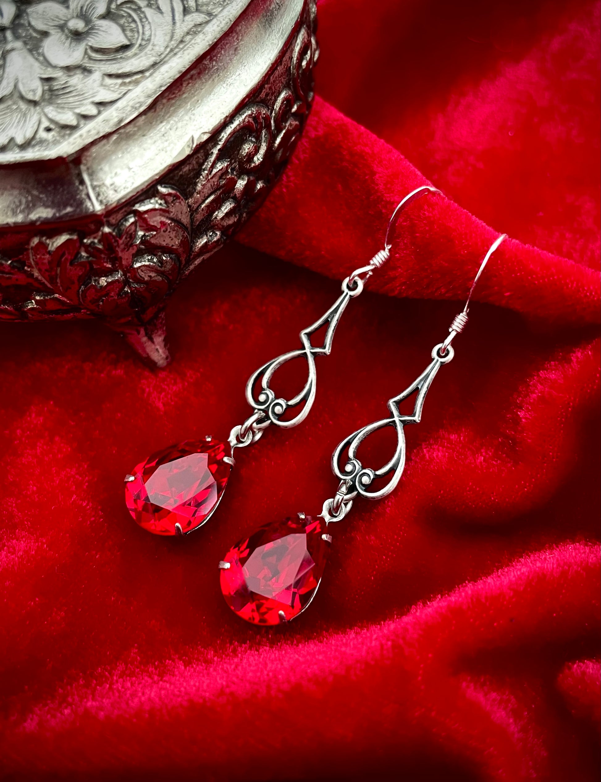 These gorgeous drop earrings feature beautiful silver filigree components that are accompanied by stunning pear drop jewels that sit in matching silver settings.